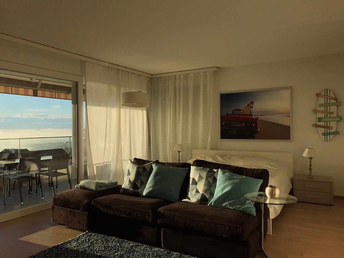 Welcome to your spacious 43m² studio, ideally located in the heart of Montreux, just steps from Lake Geneva and the train station. Enjoy the private balcony with breathtaking views, a comfortable queen-size bed, a fully equipped kitchen, and a cozy living area with a home theater projector for relaxing movie nights. 🎥 Just a short walk from the Freddie Mercury statue, restaurants, the casino, and the Rochers-de-Naye funicular. A perfect setting for your stay in Montreux! 🌅