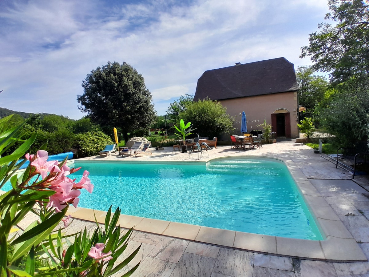 Situated less than 1000m from the Dordogne river, in the Valley of the Five Chateaux, this comfortable detached gite has everything you will need to enjoy a relaxing vacation. The terraces overlook the pool and its terrace, with tropical gardens and a poolside bar, as well as offering views of the valley, including spectacular views of four magnificent medieval castles. This famous part of the Dordogne Valley is perfect for a relaxing or action-packed holiday. The choice is yours.