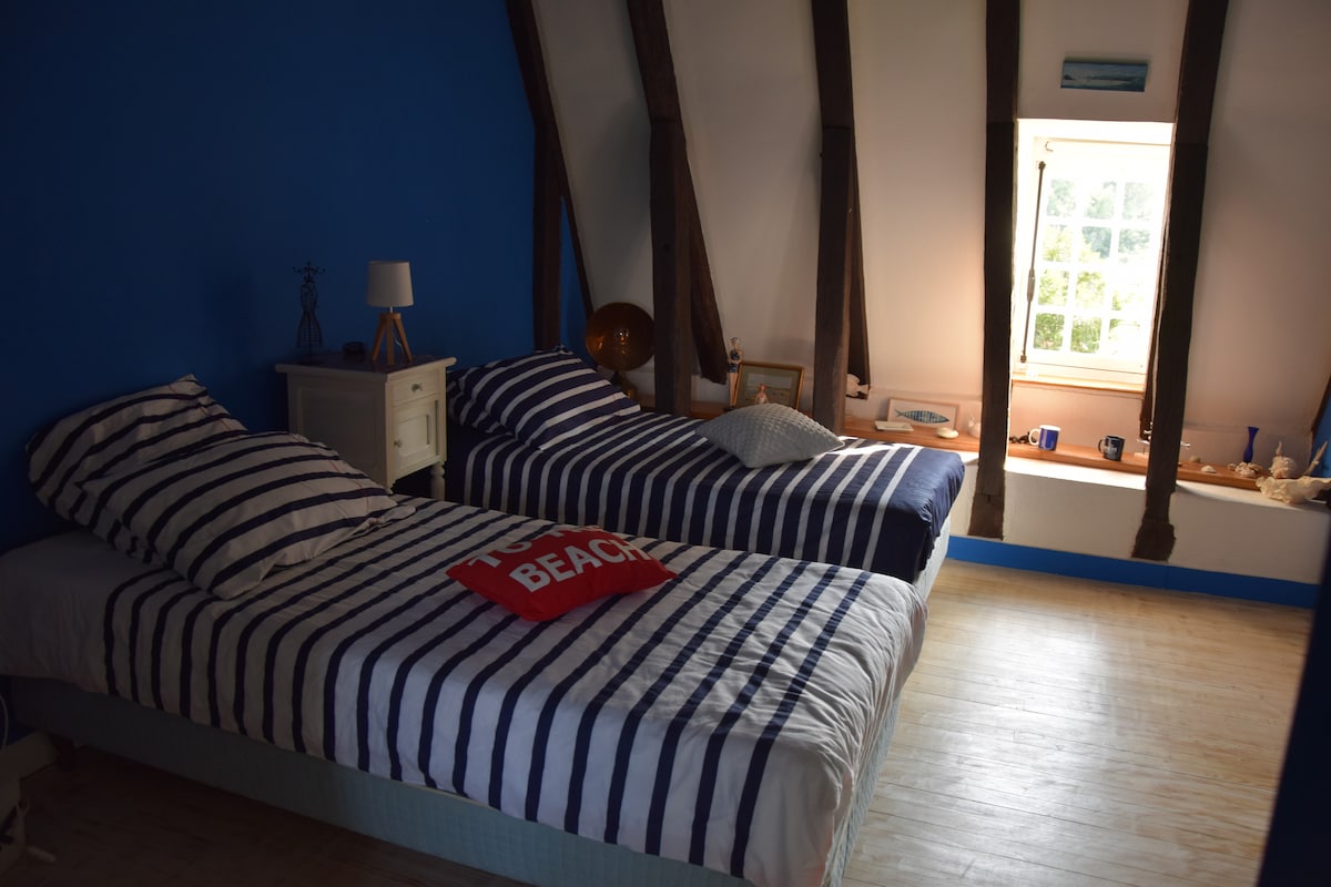 Superbe gîte refait à neuf de 45m² pour 4 personnes avec : - 2 chambres (une avec lit double, l'autre 2 lits simples) - Cuisine équipée - Salle de bain avec douche à l'italienne et WC séparés - Salon avec télévision connectée et wifi Équipé d'une climatisation réversible, d'une terrasse extérieure privative de 50m² sur 2 niveaux et d'un extérieur de plus de 5000m² avec terrain de pétanque et jacuzzi privatif (en supplément). Parking 2 véhicules gratuit Petits animaux de la ferme sur place.