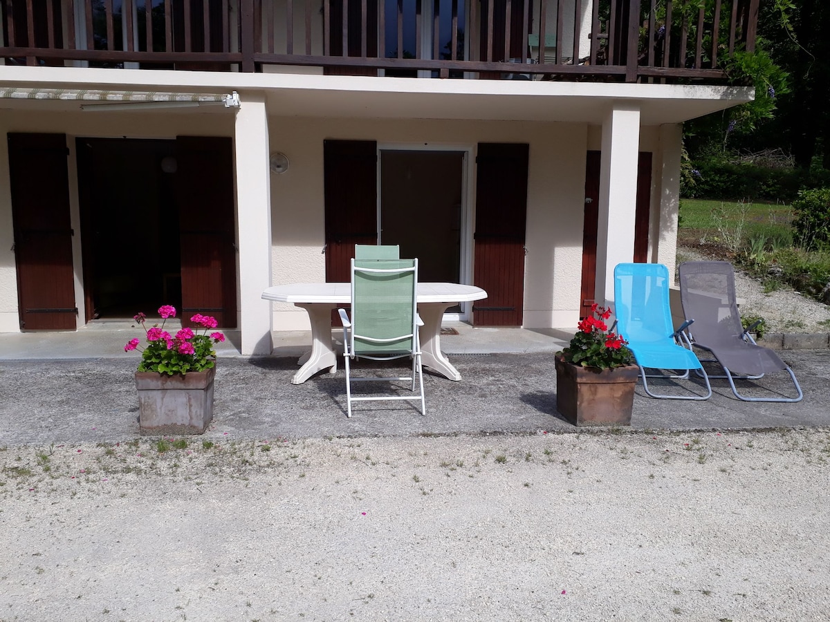 Faites une pause et détendez vous dans cette région paisible. Appartement en rez de jardin, classé 2 étoiles en meublés de tourisme. Indépendant, 2 à 4 personnes , 1 chambre, un salon avec canapé convertible, cuisine équipée, au centre du Périgord noir. A proximité de Sarlat la Caneda, château des Milandes, les grottes de Lascaux, de la préhistoire au moyen âge. Plage au bord de la Vézère ou la Dordogne, canoë ou tout simplement de belles balades en forêt...