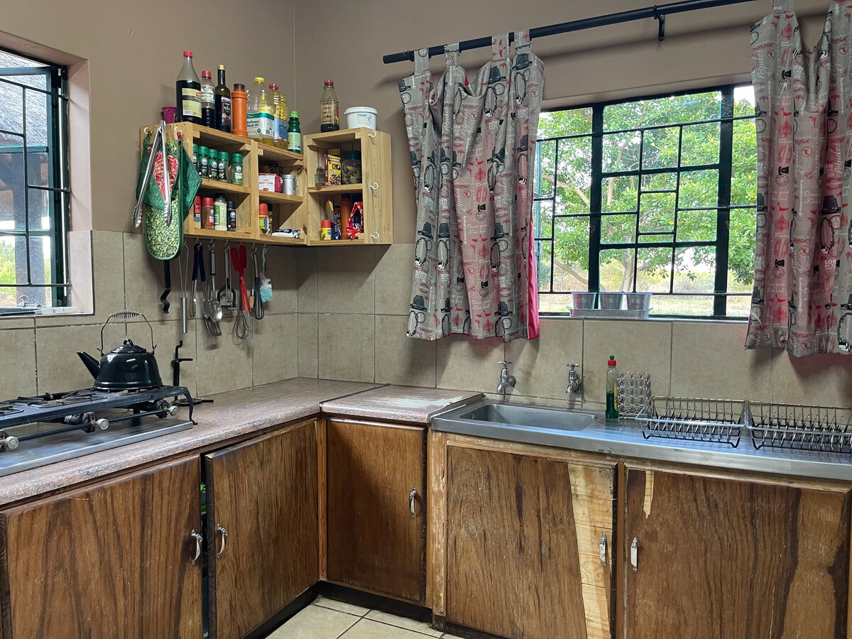 Perfect place to enjoy your peaceful stay, enjoy the sound of birds, breezing trees and river flow view. Indulge in natures best, with our outdoor bush bath tub and outdoor shower. Private pool, boma and braai area We have a fully equipped kitchen, offering self catering, with an option of private chef.