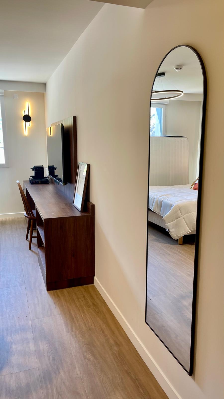 Chambre 2 personnes avec un lit double ou 2 lits simples, terrasse privée, sèche serviettes, sèche cheveux, produits d'accueil, TV, WIFI, coffre fort, plateau de courtoisie
