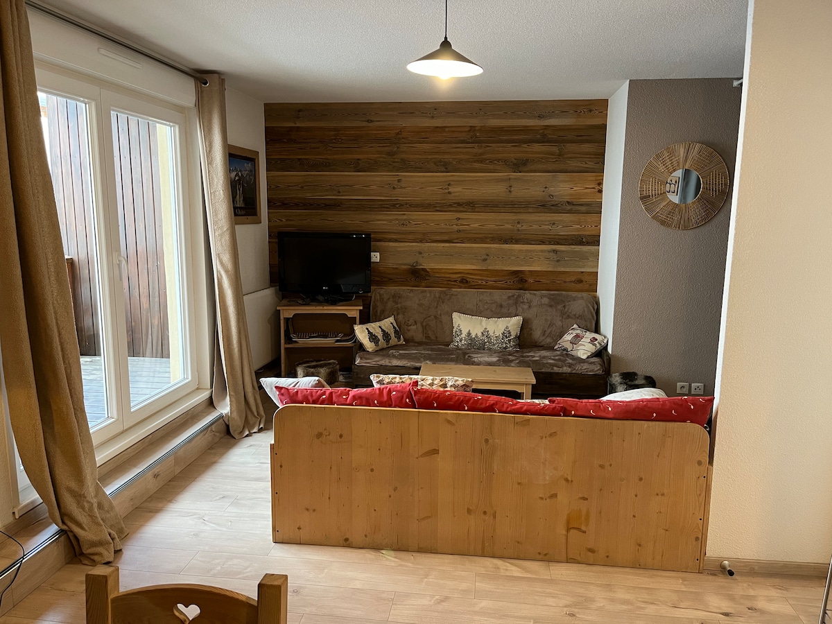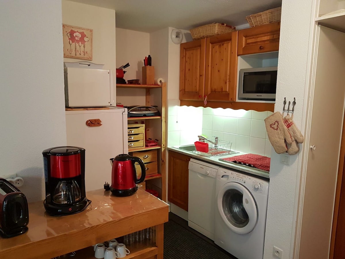 magnifique appartement f2 avec vue magnifique sur les montagnes /pistes au 4 ème etage rénové durant l'automne 2023 équipé d'une chambre avec un lit double et 3 autres couchages au salon(clic clac et méridienne prévu pour le couchage de 5 personnes, avec balcon aménagé et local à ski. batiment le chamois, 108 place roche noire avec toutes les commodités au pied du bâtiment esf, pied des pistes, magasin sport, superette, vente forfaits ......