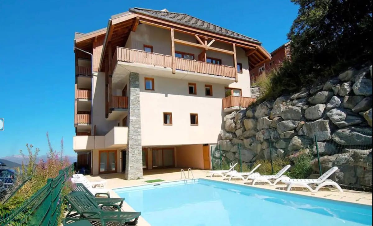 宽敞的公寓,设备齐全,阳台,游泳池,靠近滑雪道