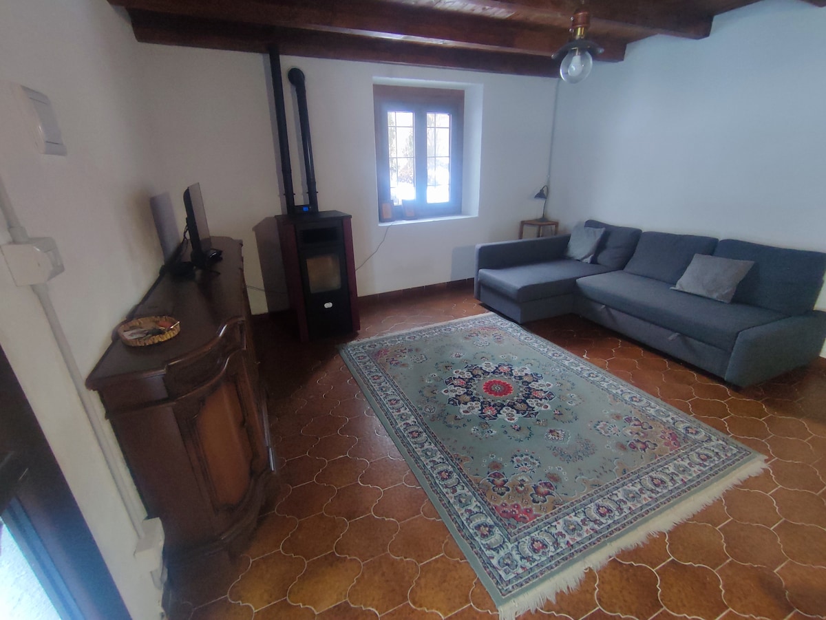 House in a splendid position in the Alps for nature lovers. Renovated and recently expanded with the studio apartment where you will be staying. Modern but in the typical mountain style. Humble in size but independent and equipped with all the amenities you need, incl. private kitchen and bathroom. Comfortable sofa bed for two. The town Villar Pellice is three kilometres away. The road to the valley is all paved but has some hairpin bends.