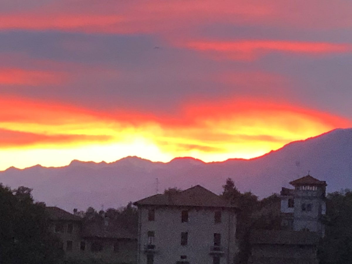 The flat is at the second floor of our house that is a sort of farm. There is a nice view on the Alps and our garden. Wooden floors, 3 bedrooms and 2 bathrooms. The suite has king size bed, a sofa and kitchen in the bedroom . Another room with 2 beds and sofa, and a third room with a double bed that I can separate in two single beds.