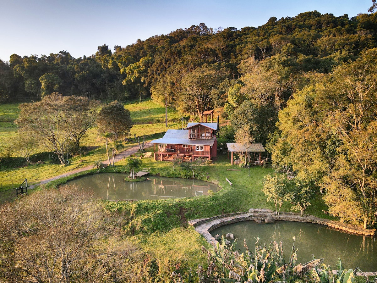 Cabana aconchegante e ideal para quem quer sossego e contato com a natureza, mas sem abrir mão do conforto. Une o rústico ao sofisticado, com móveis exclusivos feitos de madeira durante a construção, mas também com banheira de hidromassagem e chuveiro à gás, cama queen, ar cond., wifi e cozinha. Uma acomodação de luxo em meio à natureza. Está localizada no alto do morro Zuckerhut, na localidade de Ano Bom, em Colinas/RS. Do deck, pode-se apreciar uma vista incrível do vale e curtir o pôr do sol.