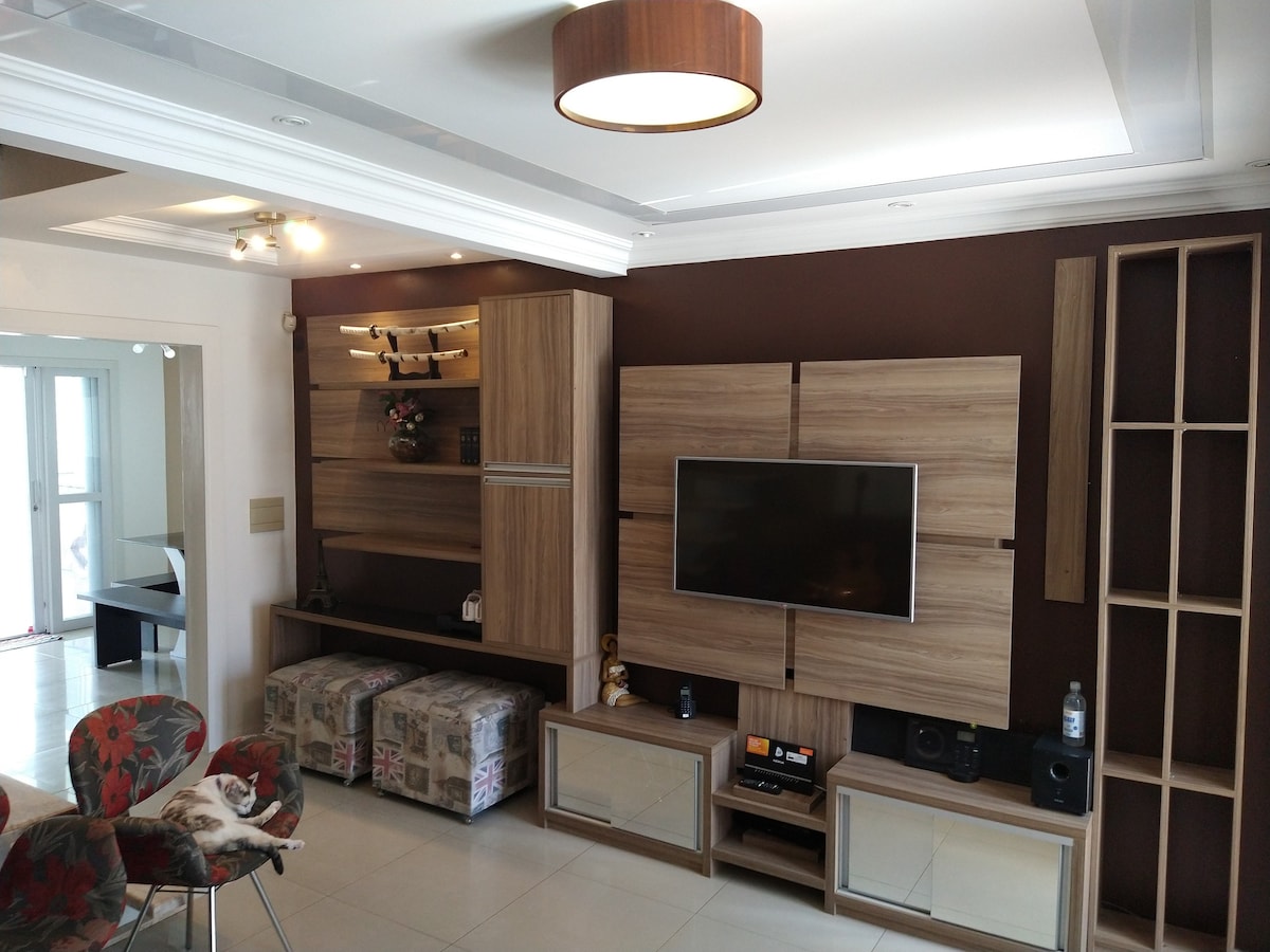 Lindo apartamento, todo mobiliado novo. - Quartos com ventiladores de controle remoto; - telas nas janelas; - Maquina lava e seca, microondas, geladeira, ar-condicionado; - sofá retrátil na sala, com tv de 50 polegadas; - banheiro com box, chuveiro e armário com pia; - Possui 1 vaga para veículo; - Possui piscinas (infantil e adulta); - Churrasqueiras; - 2 salões de festas completos; - academia de mobilidade; - pracinha; - quadra esportiva; - recanto para chimarrão; - portaria 24 horas.