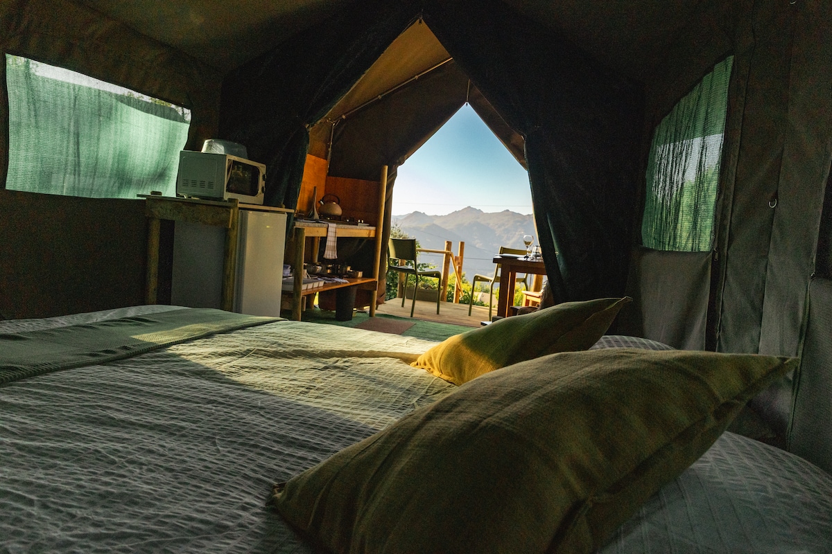 Enjoy your 2 bedroom tent with two double beds with 100 percent cotton, locally made bedding and towels. The tent boasts a refrigerator, not plate and glasses. Cooking supplies available on request. BBQ on our beautiful Volcanus grill. We have newly renovated bathrooms just for our glampers. Enjoy the shared pool, relax in the jacuzzi, sip on a drink from the reception, or book a massage. Connect to local artists who display their arts and some foods. We provide locally crafted soap.