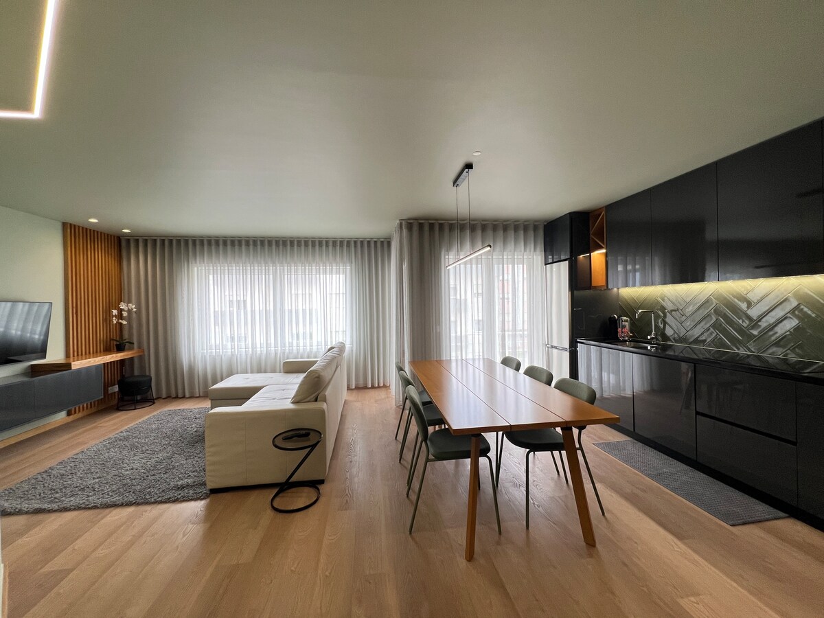 Welcome to our modern villa in Viana do Castelo, where luxury meets breathtaking ocean views. With 4 bedrooms accommodating up to 11 guests, this stunning property offers the perfect sanctuary for your vacation. Relax in the spacious living room with a large balcony, ideal for enjoying mesmerizing sunset views over the sea. Cozy up by the fireplace and indulge in a cinematic experience on the impressive 75" smart Tv.