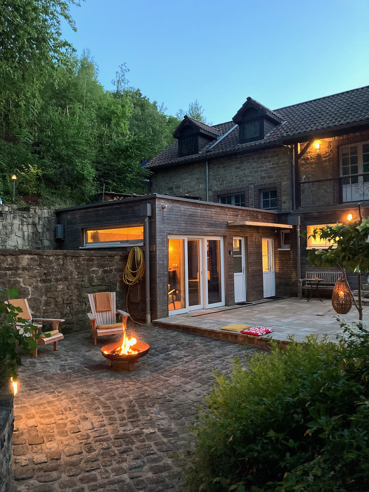 Large, quiet and bright flat, situated in the middle of nature (but very easy to reach by car). Completely renovated and integrated in a century-old house. Spacious kitchen open to the living room. High-quality design bathroom with infrared-cabine. Large, park-like outdoor area offering both sunny and shady spots to relax. Isolated location, unobstructed view. Parking spaces, bicycle storage and barbecue facilities. Ideal for nature lovers and those who want to become one.