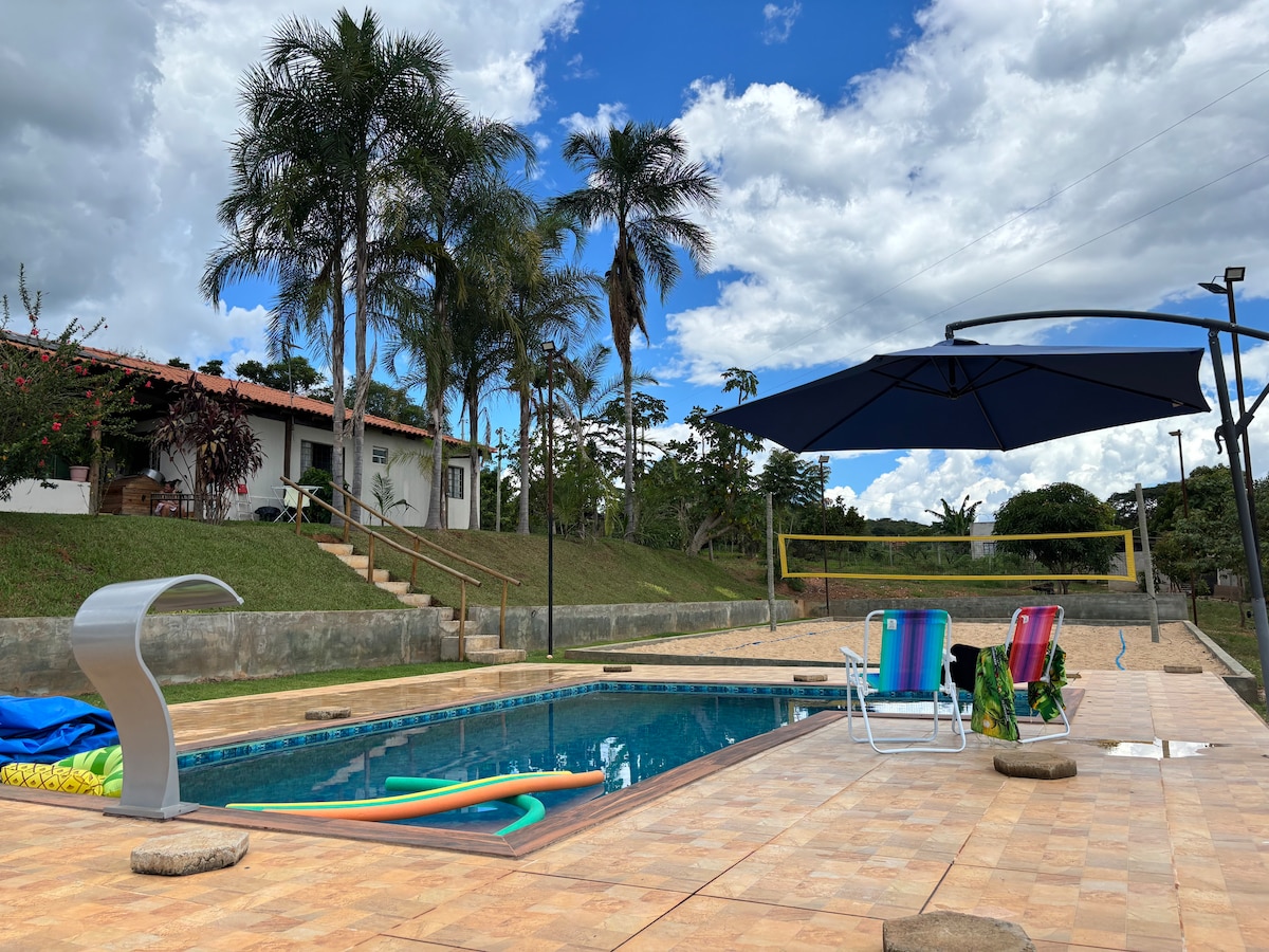 Local familiar, com piscina, bar molhadoe campo de futebol. Aconchegante por apresentar uma decoração rústica e uma bela iluminação da natureza. Próximo à cidade de Senador Canedo e à 12 minutos do shopping Flamboyant de Goiânia. CASA DO ANFITRIÃO A 150M DO LOCAL. CASO SEJAM TRAZIDOS CÃES, VIAGIÁ-LOS PARA QUE NÃO ATAQUEM AS AVES DO LOCAL. WIFI DISPONÍVEL. NÃO FORNECEMOS ROUPAS DE CAMA. CRIANÇAS ACIMA DE 2 ANOS PAGAM NORMALMENTE. VISITANTES PAGAM UMA TAXA DE R$ 70, FERIADOS R$ 80,00.