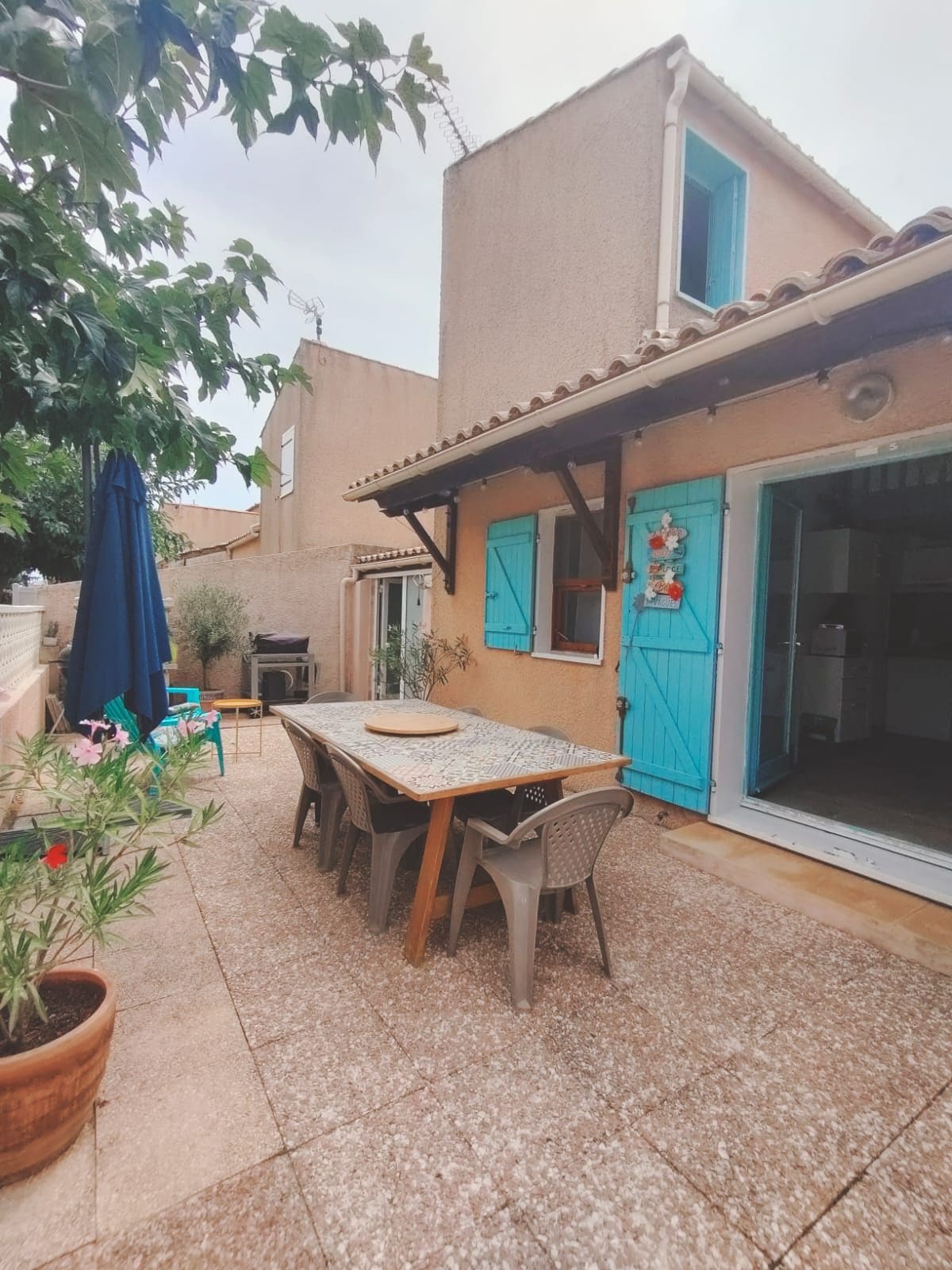 Charmante maisonnette de plage 45M2 sur 480 M2 de jardin clos et arboré. 100 mètres de la plage. Quartier familial. 2 chambres : 1X140 et 2X90 lits superposés.Cuisine équipée, lave-vaisselle.Clim. TV. Salon de jardin.Bains de soleil. Salle d'eau avec douche et wc. Douche ext. Proche centre ville et commerces. Parking privé. Petits animaux acceptés. . Max 4 personnes. WIFI +box tv. (nettoyage complet/linge propre et repassé/protections lits changés) Location semaine Juin Juillet Aout Sept.
