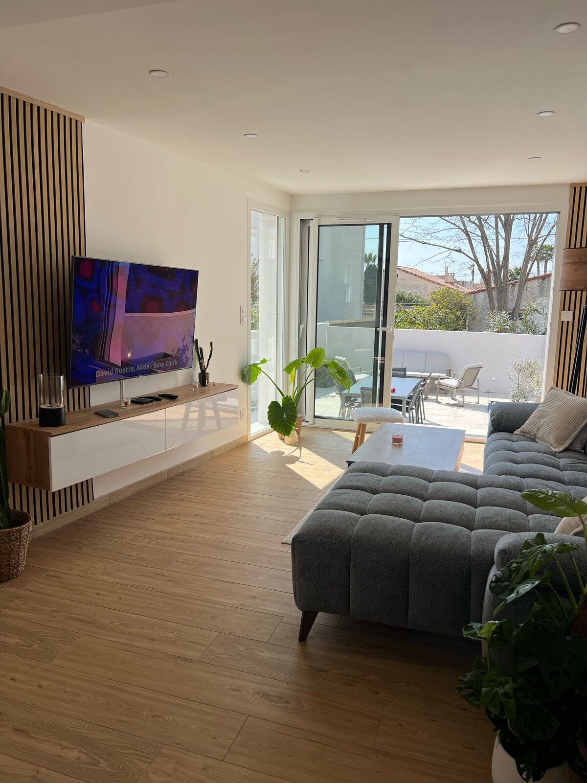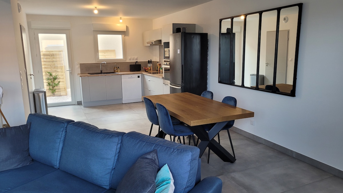 Maison entièrement rénovée et tout équipée avec une grande terrasse de 50 m² exposée au sud idéalement situé au cœur de la très dynamique station balnéaire familiale de Vias-Plage. Vous apprécierez le charme de cette jolie maison, la qualité de l’aménagement, des matériaux ainsi que son emplacement géographique. Cette maison est idéale pour 4 personnes et peut accueillir jusque 6 personnes.