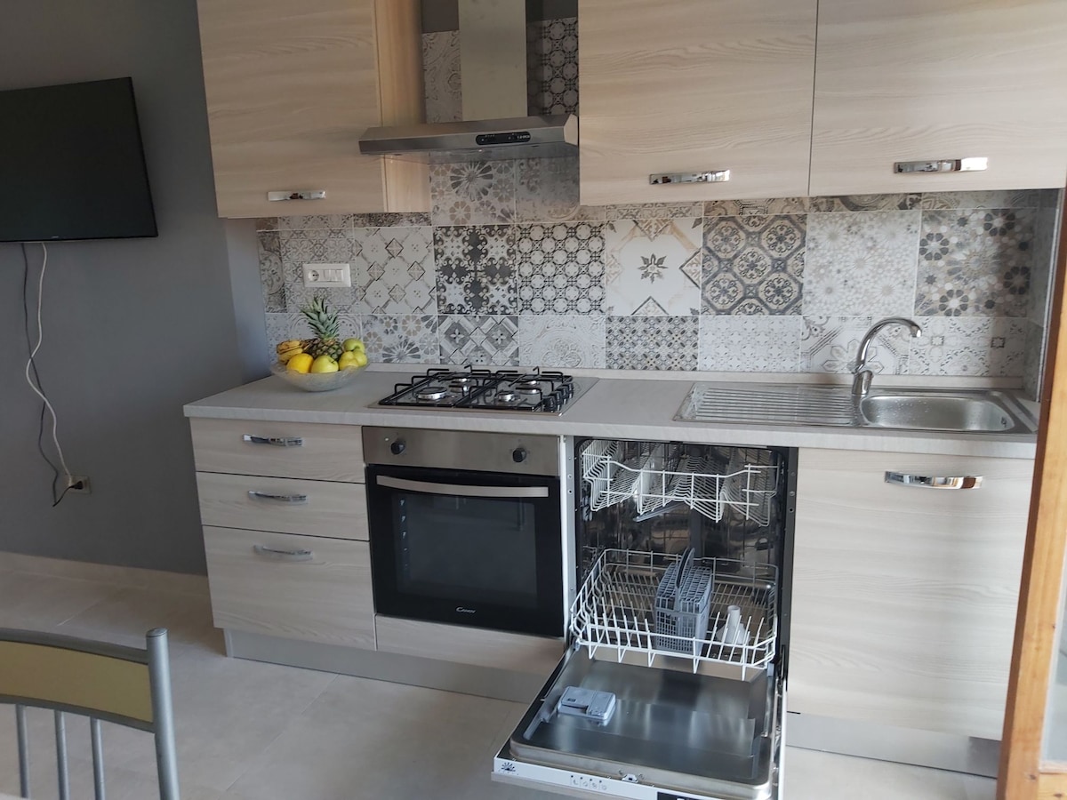 The apartment is a very comfortable three roomed apartment with a large and bright living/cooking area, two cosy bedrooms, 2 bathrooms, Wifi, tv, and a big panoramic balcony. Sofa bed situated in the living area allows you to have more guests. In total you have 110 square meters plus the terrace. The WiFi connection is excellent. 200 meters from the main square and 150 from Murat Castle. Just 30km away are the windy beaches of Gizzeria Lido, cult destinations for Kitesurfing.
