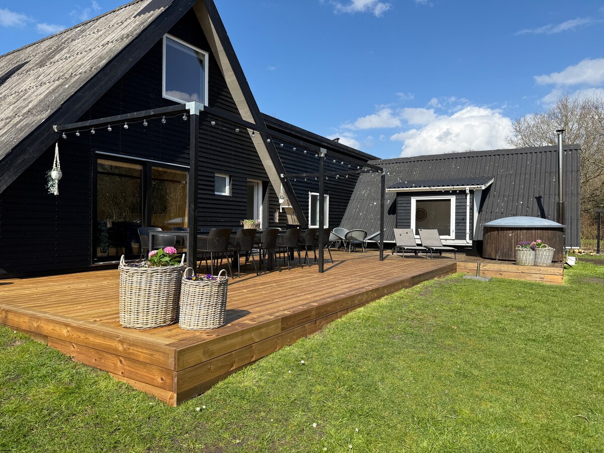 带桑拿、水疗和野外浴缸的舒适度假屋