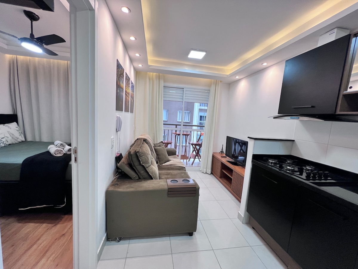 Charmoso Studio localizado no 7º andar com uma vista solar privilegiada. Perfeito para casais, pessoas viajando sozinhas ou famílias com filho. Muito bem localizado; - 5 mit. a pé do Tokio Marine e Villa Blue Tree; - 8 mit. a pé da Nestlé e da estação João dias; - 2km (10 mit. de carro) Vibra São Paulo; - 2km (8 mit. de carro) Expo Transamérica SP; - 11km (04 estações de metrô) Autódromo de Interlagos; - 16km (30 mit. de carro) Allianz Parque.