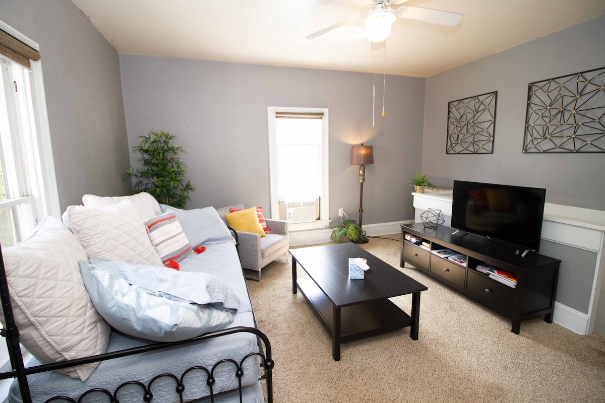 Cozy upstairs apartment, 1/2 mile away from the Village of East Davenport. This is a tiny spot, but perfect for a weekend stay or a work week trip. Radiant heat, and a lovely view of the neighborhood and sometimes peek of the river. Free Roku , and Disney+! (no local channels) WiFi Kitchen cook wear, utensils and complementary coffee and tea with to go cups for early mornings. LGBTQ+ friendly.🏳️‍🌈 Owner occupied with young noisy children in the rest of the house. No shared space, we share walls.