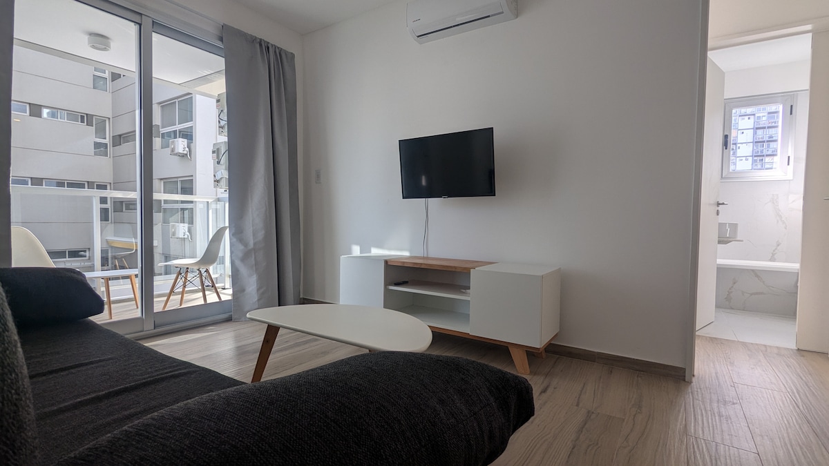 Increible y hermoso monoambiente luminoso con balcon totalmente equipado para 4 personas. Este encantador apartamento tiene todo para que disfrutes tu estadia de forma confortable !!! Posee un sommier de 2 plazas y un sillon/sofa cama para 2 personas. Amoblado con diseño, encanto y buen gusto. Aire acondicionado frio/calor, TV HD/cable, WI FI. Rapido acceso a los principales puntos de la ciudad, subterraneo linea D, Tren Mitre, Metrobus, centros comerciales y gastronomicos.