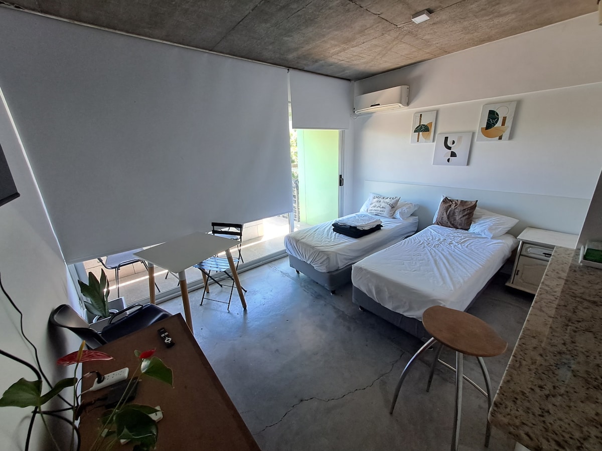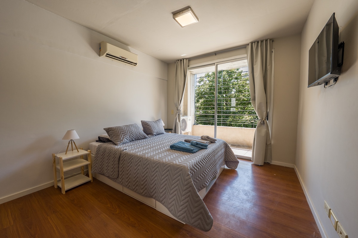Relájate en este espacio tranquilo y elegante. El area de dormitorio ofrece la posibilidad de tener 2 camas individuales o una cama Queen. En la sala el sofá de transforma en una cómoda cama. La cocina tiene todos los elementos necesarios para preparar tus comidas. El departamento se encuentra cerca de muchos medios de transporte y accesos rápidos. El barrio tiene una bohemia propia, variados lugares para comer, podes hacer caminatas hasta la costa del río, recorriendo sus bellas calles