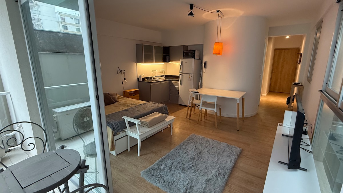 Increible y hermoso monoambiente luminoso con balcon totalmente equipado para 4 personas. Este encantador apartamento tiene todo para que disfrutes tu estadia de forma confortable !!! Posee un sommier de 2 plazas y un sillon/sofa cama para 2 personas. Amoblado con diseño, encanto y buen gusto. Aire acondicionado frio/calor, TV HD/cable, WI FI. Rapido acceso a los principales puntos de la ciudad, subterraneo linea D, Tren Mitre, Metrobus, centros comerciales y gastronomicos.