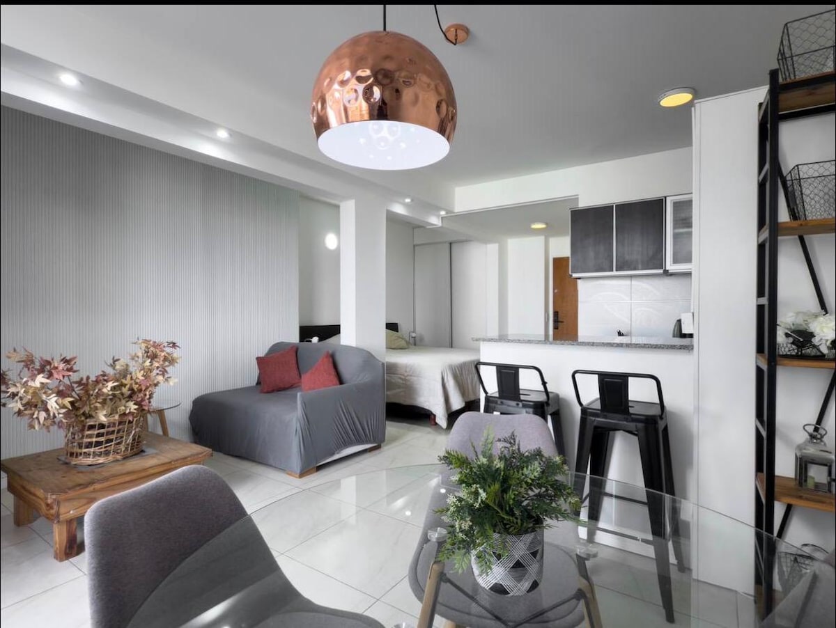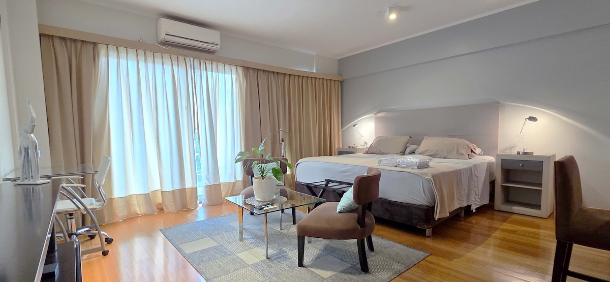 Es un monoambiente a estrenar, único, moderno y luminoso ubicado en el corazón de Belgrano. Equipado con toques modernos y de máxima calidad que garantizan una estadía perfecta. Incluye cama de 2 plazas reclinable, maletero, mesa plegable completamente funcional, toallones, sillones en un balcón especial para relajarse, TV Smart, Wifi, AA F/C, cocina equipada, microonda, heladera, pava eléctrica y tostadora. Baño completo. Amenities SUM, Sala de reunión, GYM, Pileta, Terraza con parrilla, Relax.