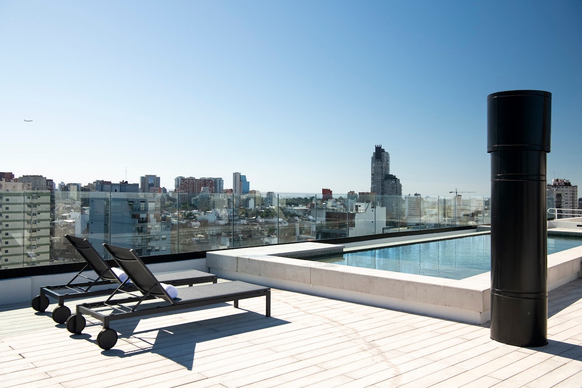 ✨ Apartamento único de tres plantas en Núñez, con diseño moderno y detalles exclusivos. Cuenta con dos habitaciones, espacio de trabajo y equipamiento fitness. El living comedor ofrece vistas impactantes y un balcón verde ideal para relajarse. Baño completo y toilette con amplio guardado. El gran diferencial: rooftop privado con parrilla, mesa al aire libre y jacuzzi, creado para disfrutar momentos de lujo, atardeceres y privacidad absoluta.