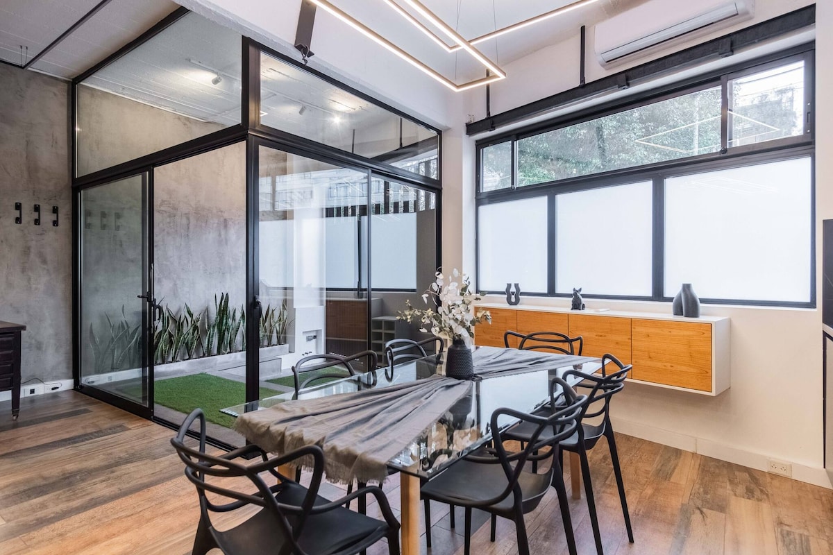 Domus Olivos harbour premium apt, riverside views, bird sounds, lots of natural light and green area. 54sqm distributed in an open floor, integrated kitchen, living room, Queen bed, and terraced dining room balcony Super WIFI 600 Mb, Full Amenities, decoration and furniture of category from Indonesia, Bali & India. 24 hour security - area guarded by the Navy and since is located a few meters from the presidencial house is one of the safest area in the city.