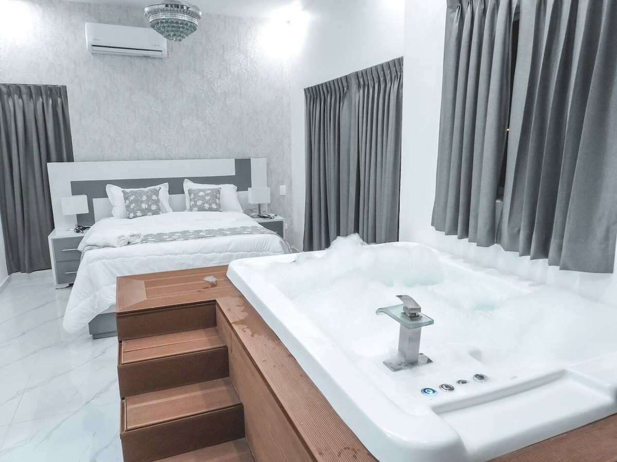距离海滩和河流10分钟,私人按摩浴缸,烧烤。