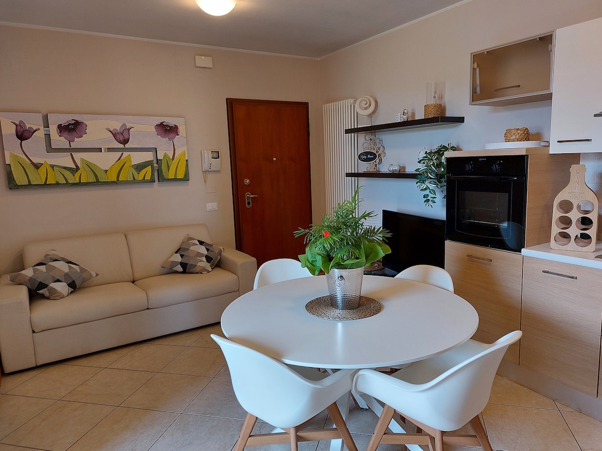 Rilassati in questo spazio accogliente e tranquillo,a pochi km dai Castelli di Giulietta e Romeo Appartamento con ampia zona giorno,con cucina attrezzata divano letto matrimoniale,terrazzo,bagno e camera da letto connessione internet Ottima posizione: 8oo metri farmacia bar supermercato McDonald's Roadhouse Sorelle Ramonda casello autostradale a 2.5 km L appartamento si trova al secondo e ultimo piano,dotato di ascensore e parcheggio gratuito sul posto