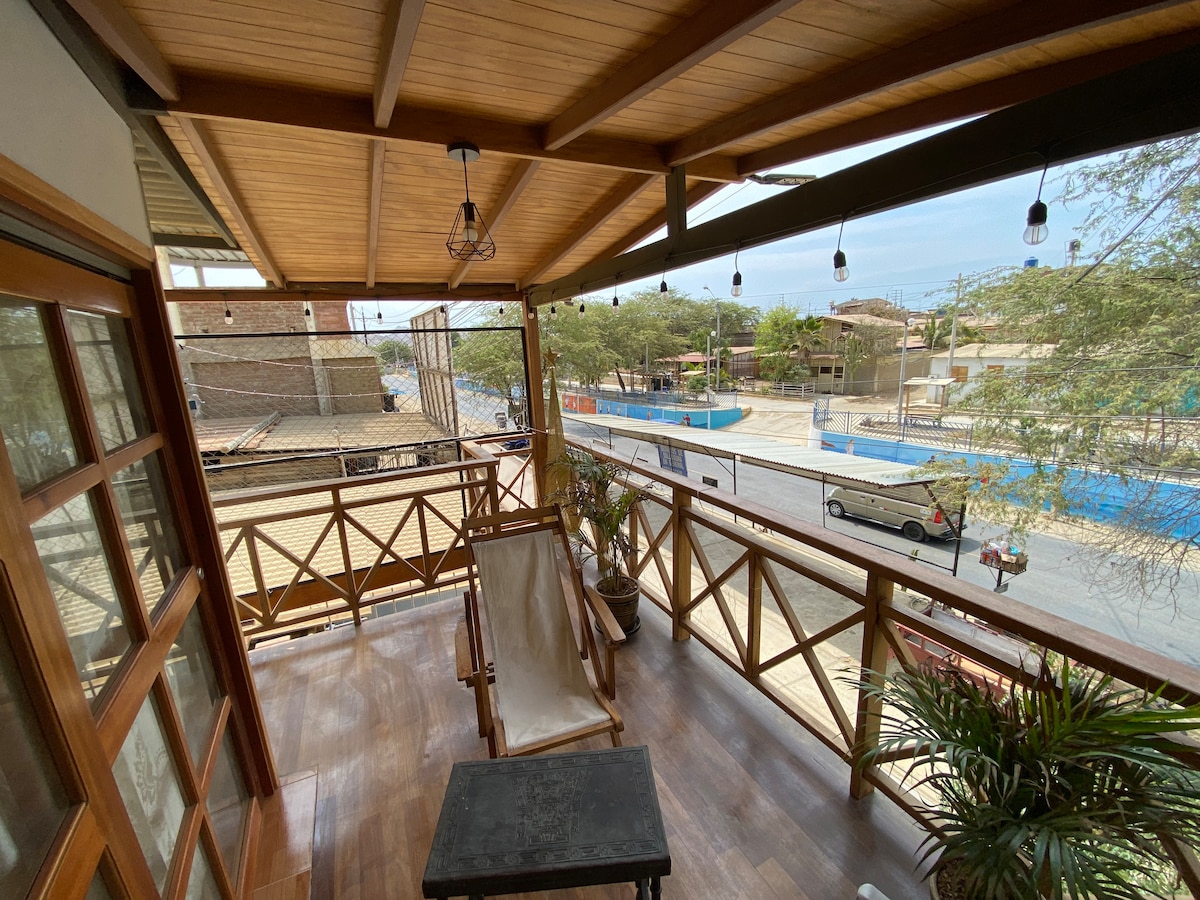 Crea recuerdos inolvidables en este alojamiento único y familiar. En la Villa Palo Santo, disfrutarás la mejor vista de la zona desde su terraza. La Sazón de una buena parrilla la pones tú y tu familia, vivirá la experiencia de compartir la naturaleza de la playa, arena y mar. Atrévete a cambiar de ambiente con Perú Properties bnb Villa Palo Santo.