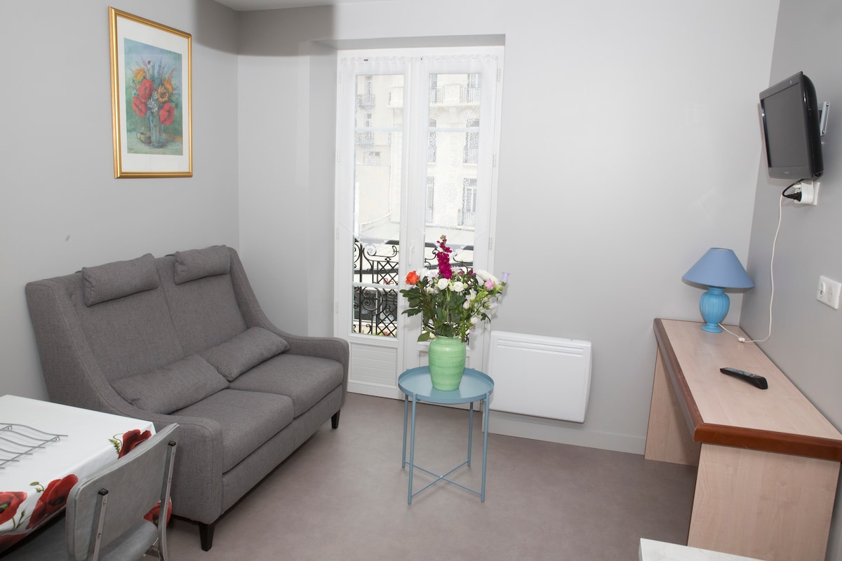 Vacances et Cures 2 à 4 pers. Nuit(s) Étape : professionnels, vrp, stages ou formations. Tarifs modifiables en fonction de la durée du séjour. Sur la période du 10 au 25 août, 3 nuits minimum. Draps et linge de maison compris dans le prix (attention, pour 2 pers, seul 1 couchage sera préparé si non demandé) 5mn gare, poste, Grand Marché, commerces, 10mn Thermes Arrêt de bus à proximité, ascenseur et accès sécurisé Balcon, donnant sur cour intérieure WC indépendant Lit en 140, Canapé-lit en 140