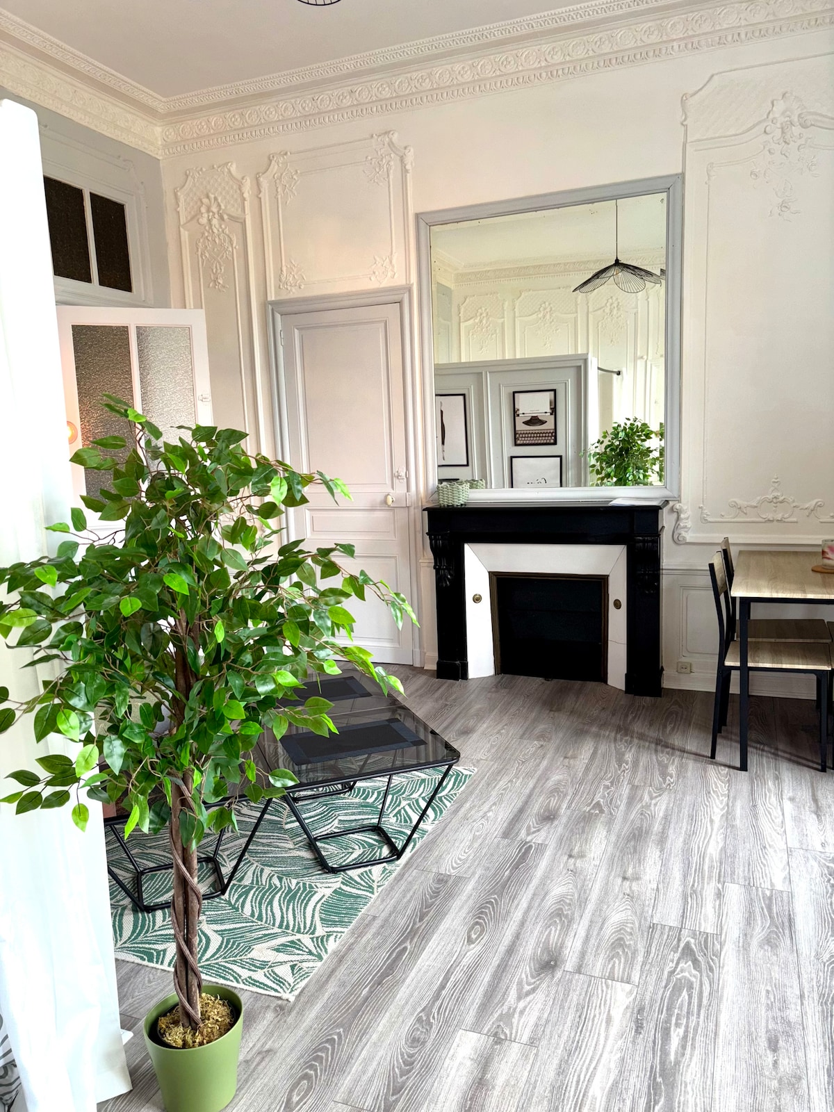 Appartement de 55m2 en RDC, entièrement refait à neuf, avec cours privative aménagée. Il est composé de : 1 entrée, 1 salon 18m2 (canapé convertible pour un couchage double en 140x200, TV 127cm, bureau...), 1 cuisine dinatoire entièrement équipée (lave-vaisselle, machine à café Nespresso, bouilloire, four, micro-onde, plaque gaz avec hotte...), 1 chambre de 17m2 (lit 160x200), 1 salle de bain avec vasque, douche, sèche serviette et WC . Literie neuve avec oreillers et matelas Emma®