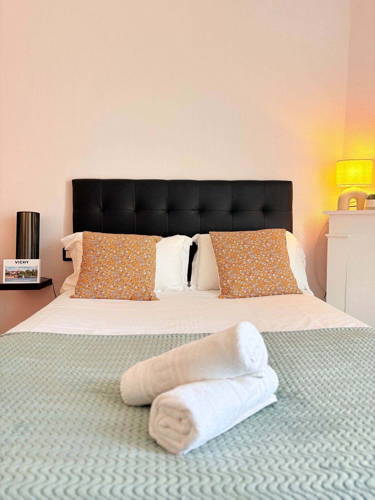 Bel appartement cosy de 60m² refait à neuf situé au deuxième étage d'un petit immeuble dans un quartier calme. Emplacement exceptionnel en plein cœur de Vichy, proche de tous commerces, restaurants, parcs, balade au bord du lac ainsi que du centre thermal. Connexion wifi haut débit. Parking gratuit à proximité de l'appartement. Linge de maison fourni. Sur demande : lit parapluie et chaise haute.