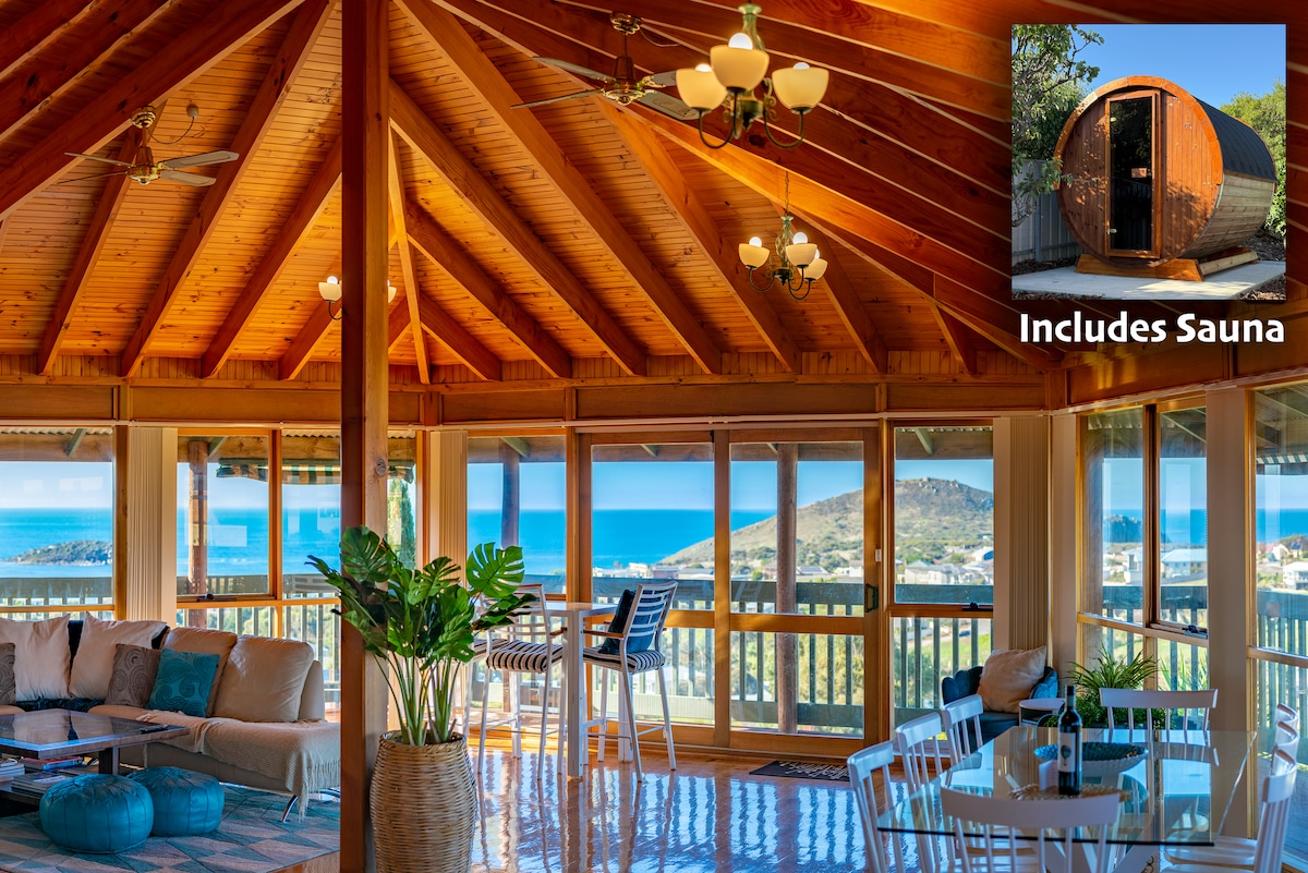 Perched on a hill you’ll enjoy panoramic views of Encounter Bay from this inviting, pet-friendly home, with a private Finnish cedar sauna. Relax while taking in the ocean views through the floor-to-ceiling windows in the spacious, bright family room, or step into the sauna after a day exploring the coastline. Featuring a large, fully equipped kitchen, meals can be enjoyed at the 8-seater dining table. High-quality sheets & towels are provided, so you don’t need to worry about bringing linens.