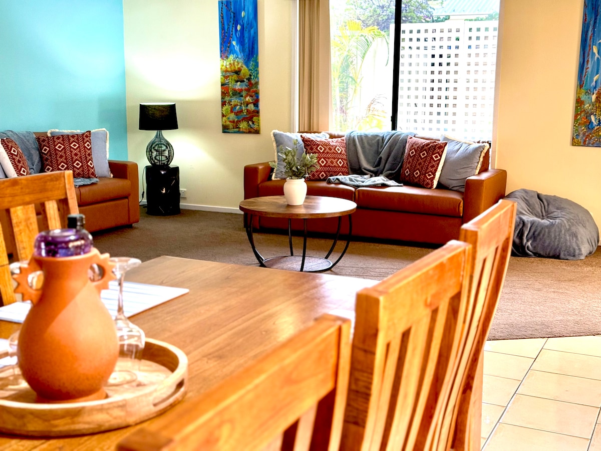 Charming, retro, stylish and a twist of quirky with SPECTACULAR views best describes this lovely home! You really will feel you are on holidays!! Only four streets back from the coast. Very well equipped with every thing you need to sit back and relax! This holiday home has a 'Teenager' retreat on ground level with TV (Play station and Wii). Upstairs the views await! Sit back and relax on the balcony or in the living room which the owners personal unique touches that makes it special!