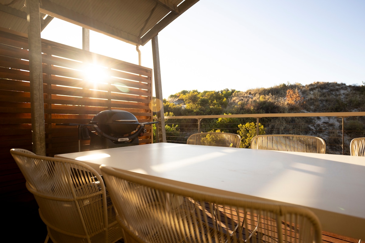 This beautifully appointed 3-bedroom beach villa is the best-located at South Shores, right by the beach-access boardwalk, a picturesque park and two swimming pools, yet with privacy and amazing views over kangaroo-dotted paddocks to the sand dunes. The light-filled living area offers peace and seclusion both in and outdoors, with resort-style benefits only moments away.