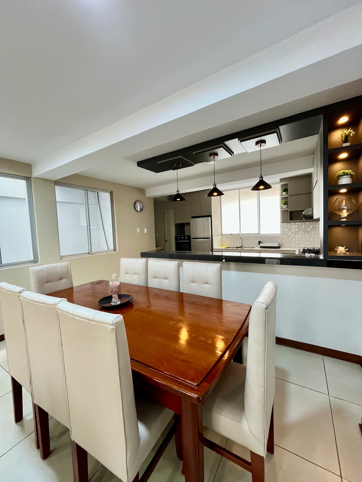 Vive la comodidad en este moderno y amplio departamento ubicado en Trujillo. Con 3 elegantes y espaciosas habitaciones, 2 baños completos, una sala-comedor luminosa y acogedora, y una cocina equipada este espacio está pensado para brindarte una estancia agradable. Su ubicación es estratégica: cerca de universidades, centros comerciales, restaurantes y supermercados. A solo 9 minutos del aeropuerto y a 15 del centro histórico. Perfecto para familias, viajeros o estancias por motivos de trabajo.