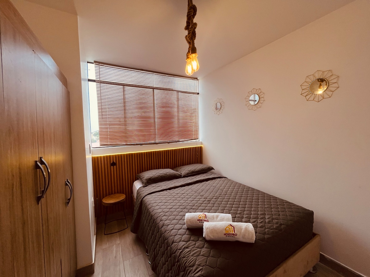 Mini departamento TIPO ESTUDIO AMOBLADO e INDEPENDIENTE SIN RESTRICCIONES DE ENTRADA NI SALIDA 01 habitación con 01 cama de 2 plazas & TV de 32¨, baño privado c/ ducha y agua caliente las 24 hrs. El área de cocina viene equipada con: cocina de inducción, mini refrigerador, hervidor eléctrico, microondas y utensilios básicos de cocina También tiene una pequeña sala BASTANTE ILUMINADA con una MESA PARA TRABAJAR y un sofá INCLUYE agua, luz, internet Wi-Fi VELOZ CON BUENA SEÑAL