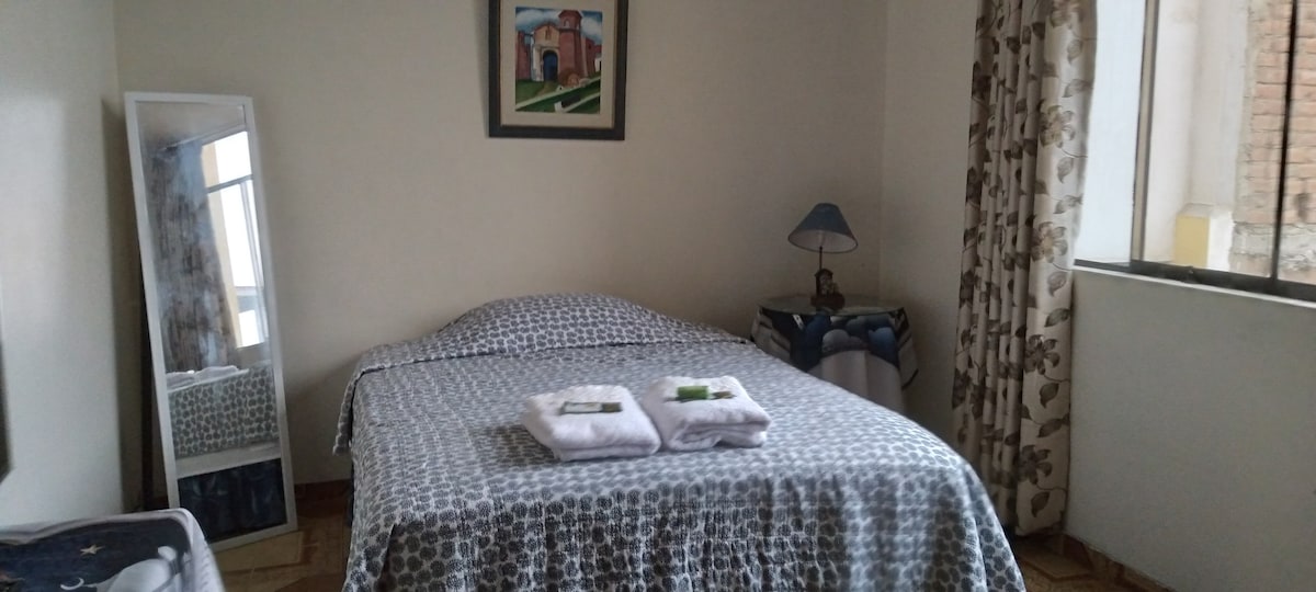 Disfruta de la sencillez de este alojamiento tranquilo y céntrico, es un hermoso minidepartamento de estreno, ubicado en un tercer piso, con vista interna de la vivienda y con entrada independiente, por escaleras ,con una capacidad de hasta 3 personas ,ubicado en el centro de la ciudad de Trujillo, a 8 minutos de la plaza de armas de la ciudad, cerca a restaurantes , farmacias y agencia de viajes . Se puede emitir factura o boleta previa coordinación.