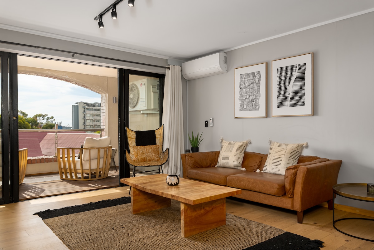 Wake up to panoramic views of the Atlantic Ocean, Signal Hill, and the V&A Waterfront in this curated luxury penthouse on the Platinum Mile strip. Equipped with premium EcoFlow power backup for uninterrupted WiFi and entertainment, The Artists Penthouse combines the soul of a gallery with the reliability of a high-end business suite. Whether you are in town for the Mining Indaba, the Cycle Tour, or a romantic escape, this is your front-row seat to Cape Town luxury.