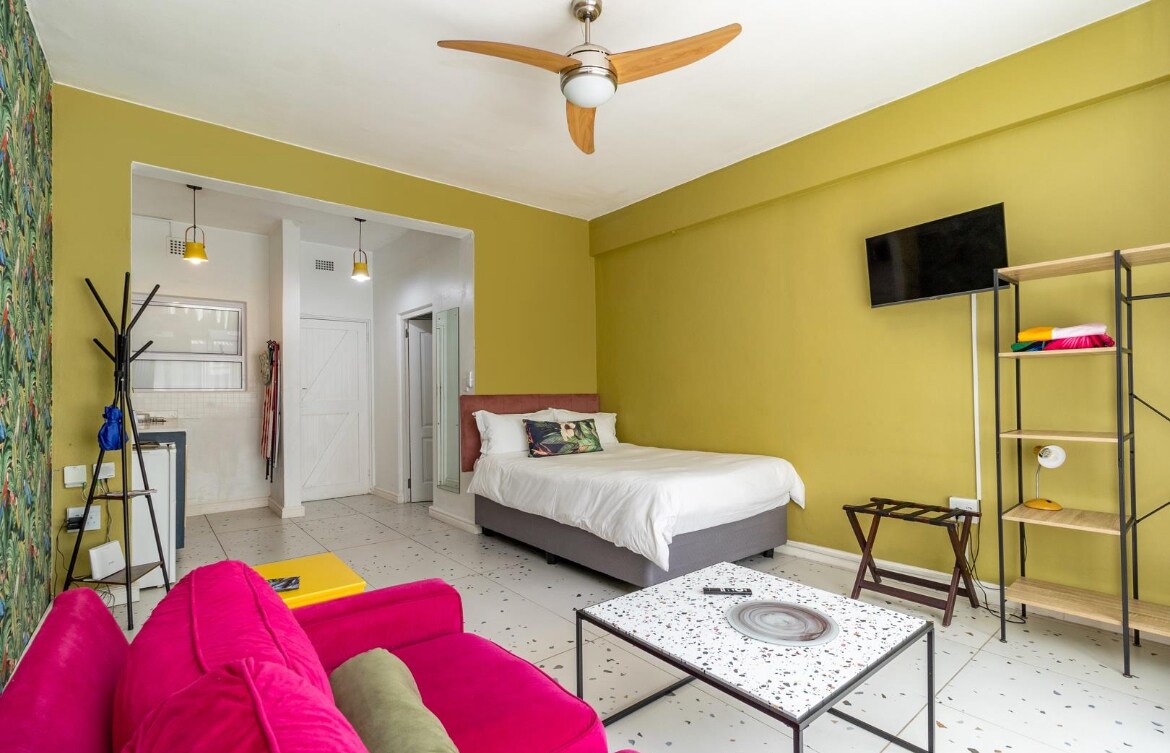 Enjoy a stylish experience at this iconic and centrally-located apartment building. Nestled on the main road of a tree lined suburb, 10 minute walk from the V&A Waterfront, Two Oceans Aquarium and Green Point Stadium. Restaurants, grocery store, deli, hairdresser, barber, laundromat all in the same street. Prime location! We have loadshedding backup. *Please note: Construction is taking place across the road, with noise related to this from morning to 5pm, Monday to Saturday.