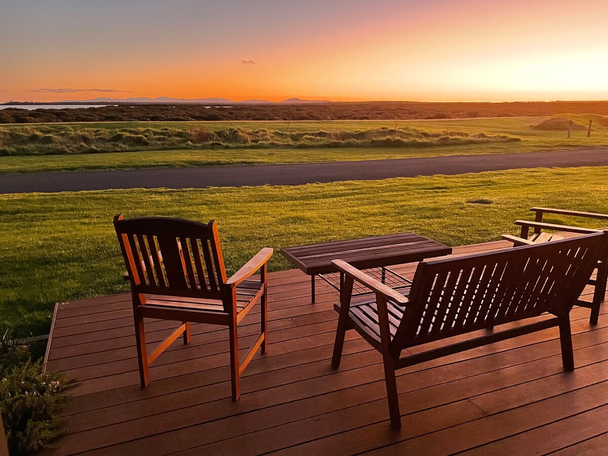 As evidenced by the feature photo, the house offers sweeping views of Lake King and the Boole Poole Peninsula. This panoramic view now includes the Metung Hot Springs resort, our new neighbours, positioned some 20 metres from our water view deck. Construction of Stage 1, a glamping and hot pools offer, is now open. Book on the MHS website to secure your relaxing hot pools experience.