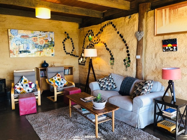 Tuena Cottage is a beautiful mud-brick home made with the dirt on which it stands. Situated on three acres of garden, this character filled home is ready to be enjoyed. Nestled amongst the rolling hills and only an 8 minute drive to the local watering hole 'Coldstream Brewery', this is the perfect place to escape the hustle and bustle of everyday life and relax after a day of exploring all the Yarra Valley has to offer. For the winter traveller we offer an open fire place to keep you cosy.