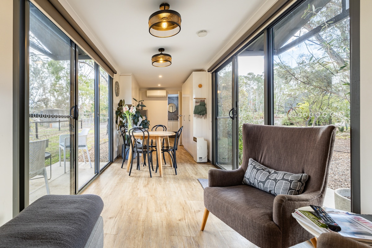 Recently refurbished, and walking distance Healesville town centre, The Little Valley Shed, started life as a humble country garage, it has been thoughtfully reinvented as a cosy living space, perfect for a couples retreat or family getaway Nestled in a quiet residential area street, you'll find everything you need to to enjoy a peaceful sanctuary during your Yarra Valley escape The guesthouse is equipped with a large master bedroom, a spacious living area, with twin bunks perfect for kids.