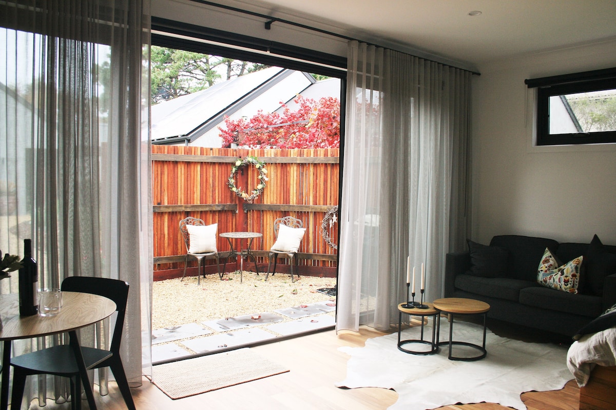 Framed by heritage-listed Elm trees, The Mini, a single room studio & ensuite, invites you to wake up to unique views of Healesville's beauty including Mount St Leonard, horses, and abundant bird-life. A photographers paradise or sweet romantic getaway, The Mini is poised on the banks of the Watt's River, and located exceptionally close to town. Only 300m to Healesville's bustling Main Street, and 700m to Four Pillars Distillery, we welcome you to our unexpected slice of country paradise.