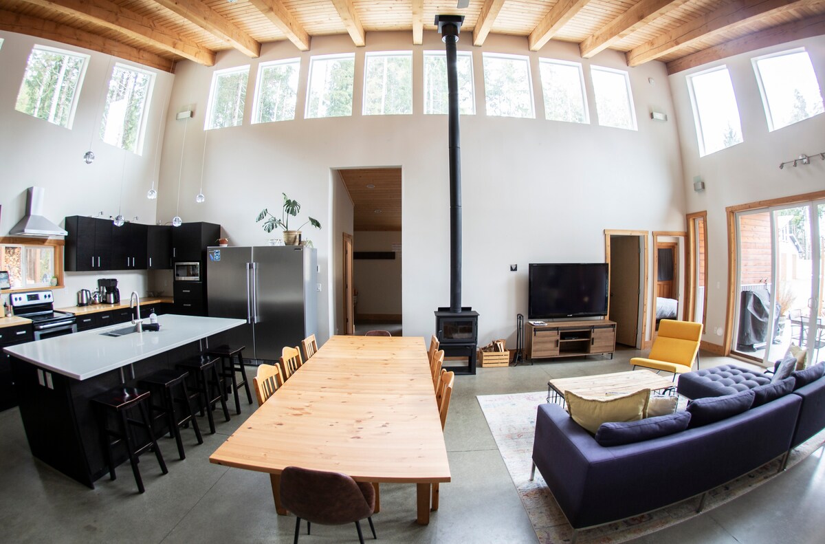 Enjoy a relaxing, unplugged, spa experience in the wilderness of one of Vancouver Island's most beautiful rainforests! The land of peace, tranquility and natural beauty. This custom built cabin is designed to welcome the outdoors in, the abundance of windows allows endless views of trees and stars by night. The home can comfortably sleep six people. This listing is approved by the BC Short Term Rental Registry: H781553342