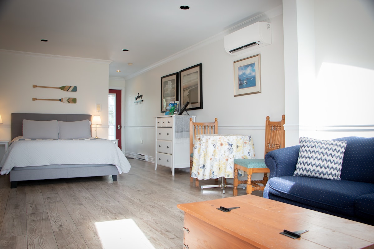 Forget your worries in this spacious and serene space just steps from the beautiful Bras d’Or lakes. Located just minutes from Highway 105 and gateway to all things Cape Breton, our accessible guest suite features its own private entrance, a lovely sitting room, a large master bedroom with a king size bed and large washroom with walk in shower. The space also has kitchen essentials including a microwave, coffee/tea maker and a small fridge. Come get a break from life in our cozy lakeside suite.