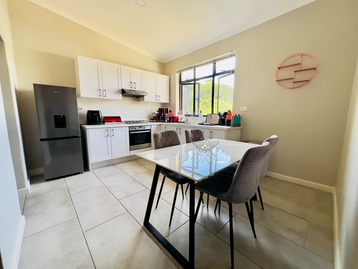 A lovely and stylish 2 bedroom apartment located in Victoria Falls Estate Unit 132 The space offers a peaceful environment and a recommended private self catered experience for up to 4 guests. The space is equipped with brand new furniture. There are cleaning services available upon request. The apartment has solar and electricity so never worry about power outages. Looking forward to welcoming you!