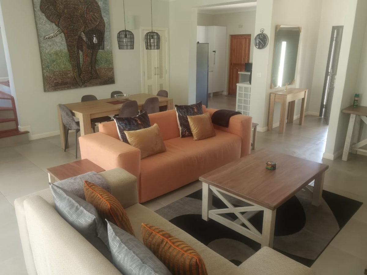 This stylish, centrally located 2-bedroom duplex apartment offers comfort, convenience, and a touch of luxury—perfect for families, couples, or business travelers. Just minutes from the town center and a short drive to the Victoria Falls. Features: A fully equipped kitchen for self-catering Two spacious bedrooms An open-plan living and dining area with modern furnishings A private balcony/patio for your morning coffee or evening wine High-speed Wi-Fi and smart TV Secure parking